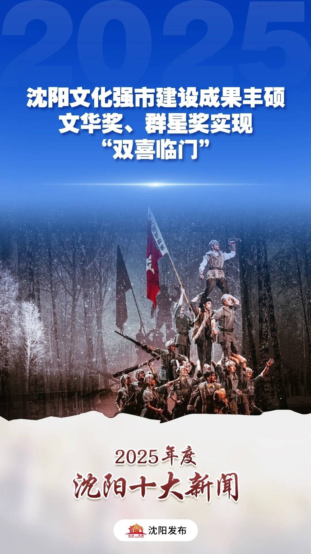 11月4日,第十四届中国艺术节闭幕式上,沈阳在国家级文艺最高奖项评选中斩获两项殊荣,实现历史性突破。其中,沈阳杂技演艺集团创作的杂技剧《先声》荣获第十八届文华剧目奖,该剧此前已斩获中宣部“五个一工程”奖,成为沈阳市首部同时包揽两项国家级最高奖项的舞台艺术作品,成就巅峰荣誉大满贯;沈阳文旅青年合唱团喜获第二十届群星奖,彰显我市群众文化建设丰硕成果。此次是沈阳首次在同一年度拿下文华奖、群星奖两项国家级最高文艺类奖项,标志着我市文艺创作专业水准与群众文化发展质量实现双提升、双突破。