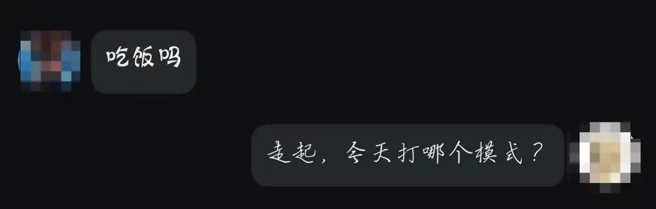 起初好奇CFM为何讲“吃饭吗”而非“吃饭没”。表弟说因为想喊朋友玩,“吃饭吗”是更主动的邀约,在CFM玩家圈子里是热情浓缩。一句“吃饭吗”发在战队群,队友秒懂上线开黑。
